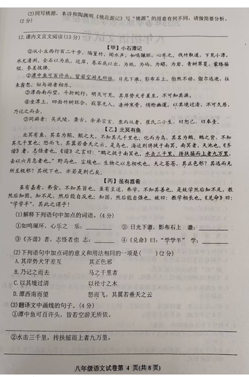 初中期末試題