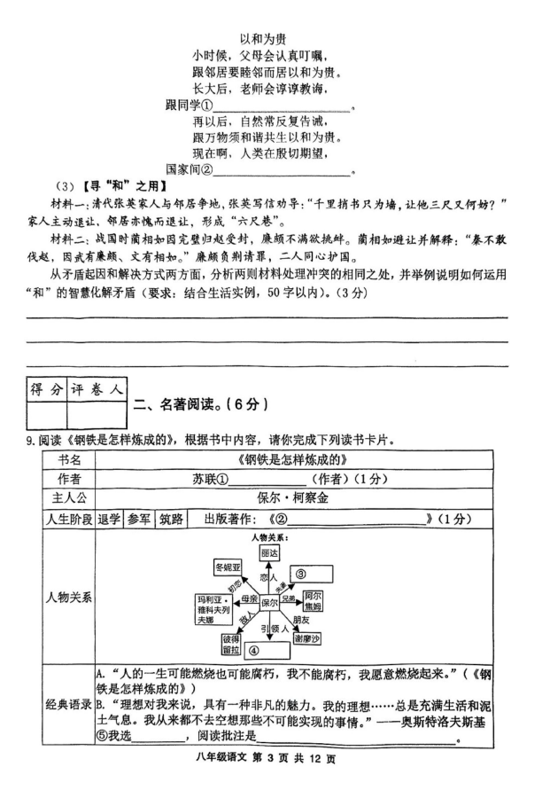 2024-2025學(xué)年四川資陽(yáng)樂(lè)至縣八年級(jí)下學(xué)期語(yǔ)文期末真題(圖片版)(3)