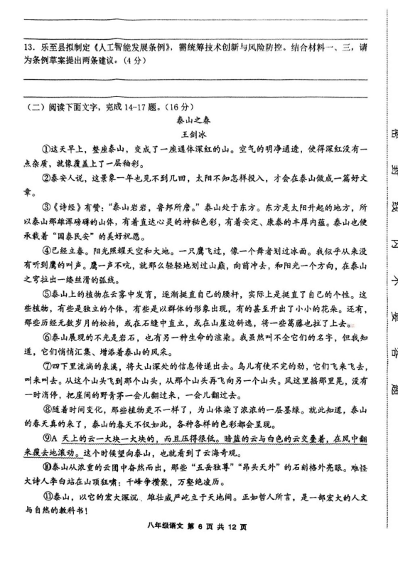 初中期末試題