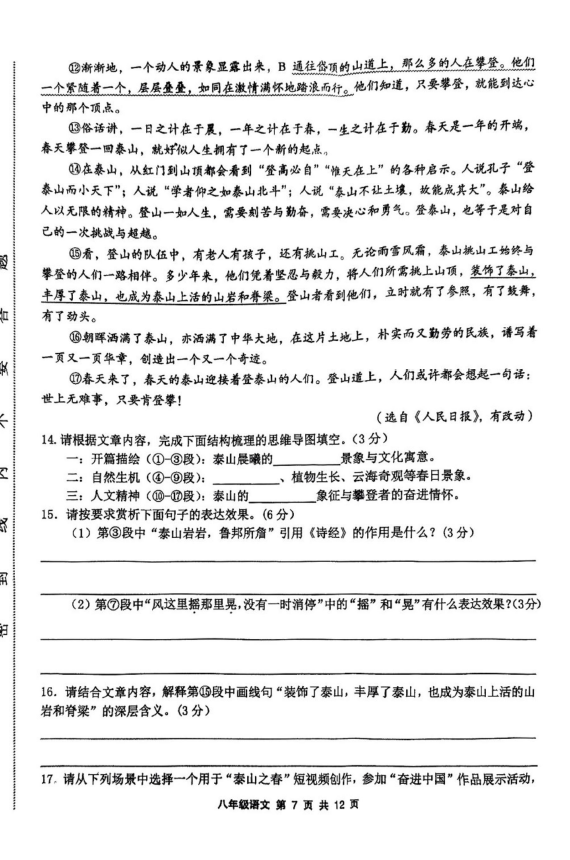 初中期末試題