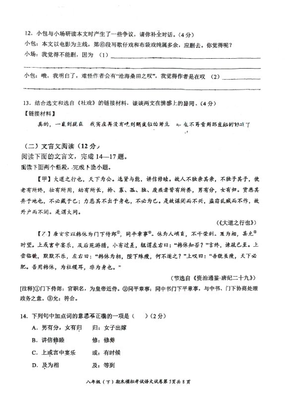 初中期末試題