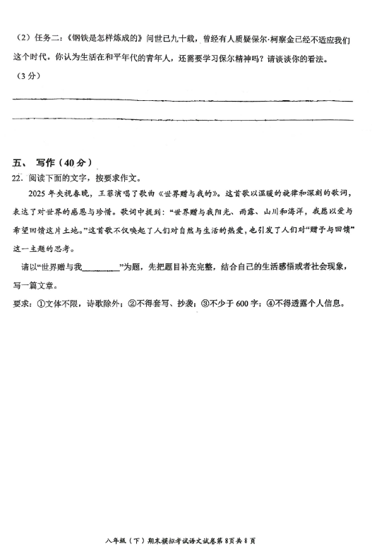 資料內(nèi)容:【25年 初一 初二 初三期末考試真題】